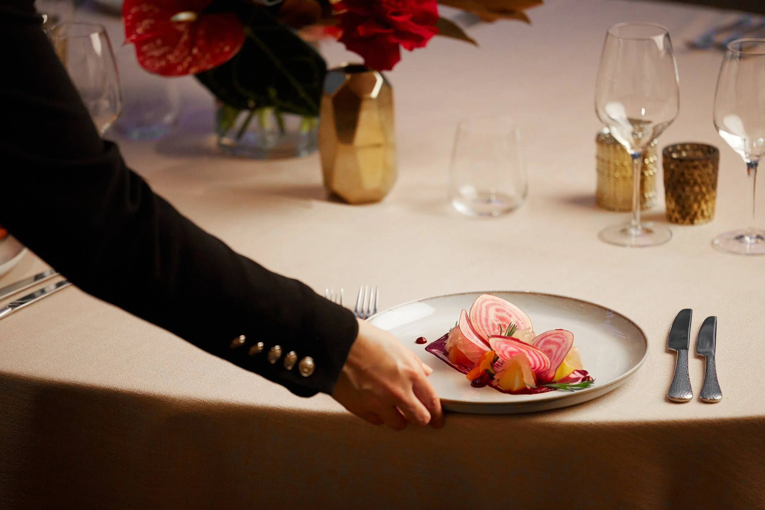 The culinary experience is anything but standard. Couples can collaborate with the in-house chefs to craft menus that reflect their story—think elegant multi-course dinners, tailored cocktail hours, or late-night bites. Locally sourced ingredients and inventive presentation ensure every dish is a talking point.